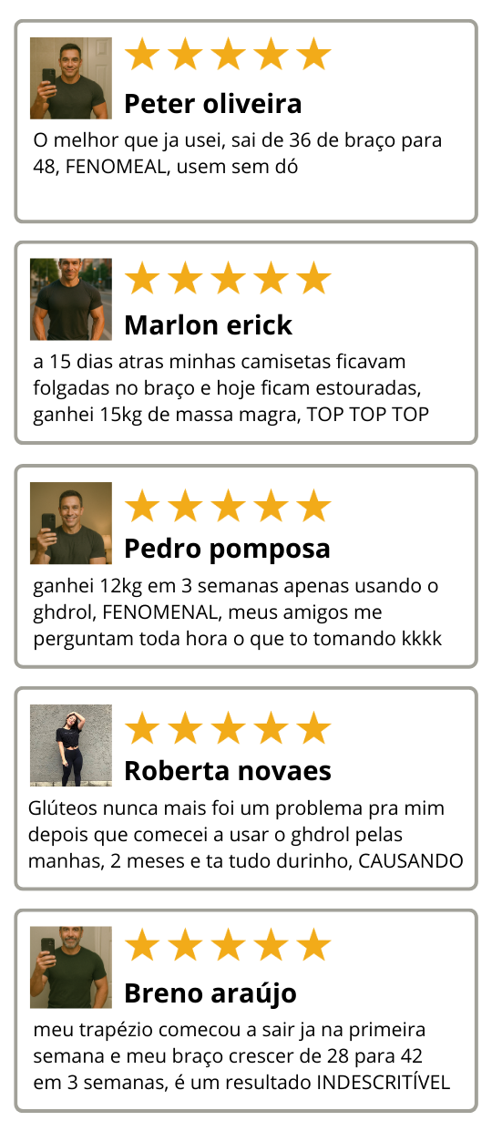 O Ghdrol atua em todos os fatores determinantes para a evolução corporal física e de performance�por isso sua eficácia é tão grande e sua eficiência em acelerar os resultados e criar músculos e trazer benefícios físicos é extremamante rápida, isso o diferencia de qualquer outra fórmula existente no mercado, funcionando para qualquer pessoa, em qualquer situação, que busca ter o corpo musculoso, definido e que queira ter saúde e performance em todas as areas da vida.